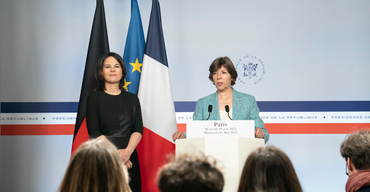 Im Anschluss an den Ministerrat wandten sich die beiden Außenministerinnen Annalena Baerbock und Catherine Colonna gemeinsam an die Presse und betonten dabei besonders :
