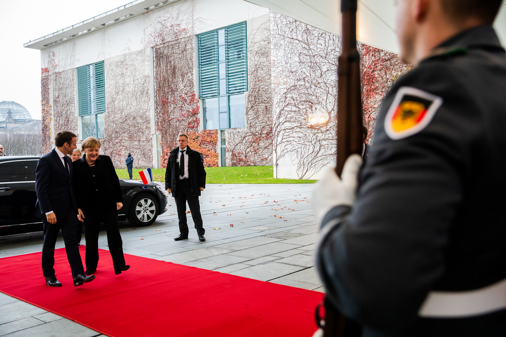 En effet, cette invitation et ma présence pour le Volkstrauertag est en quelque sorte un écho à votre présence… notre présence ensemble dans la carrière de Rethondes, puis à l'Arc de Triomphe et votre ouverture du Forum de Paris pour la paix la semaine dernière et je crois que ces démarches communes, qui sont symboliques, mais nous disent combien notre histoire nous engage. C'est pourquoi je suis extrêmement à la fois honoré et heureux d'être à la Chancellerie et d'avoir été justement à l’instant devant vos représentants pour m'exprimer un jour si important pour l'amitié entre nous et pour votre peuple.