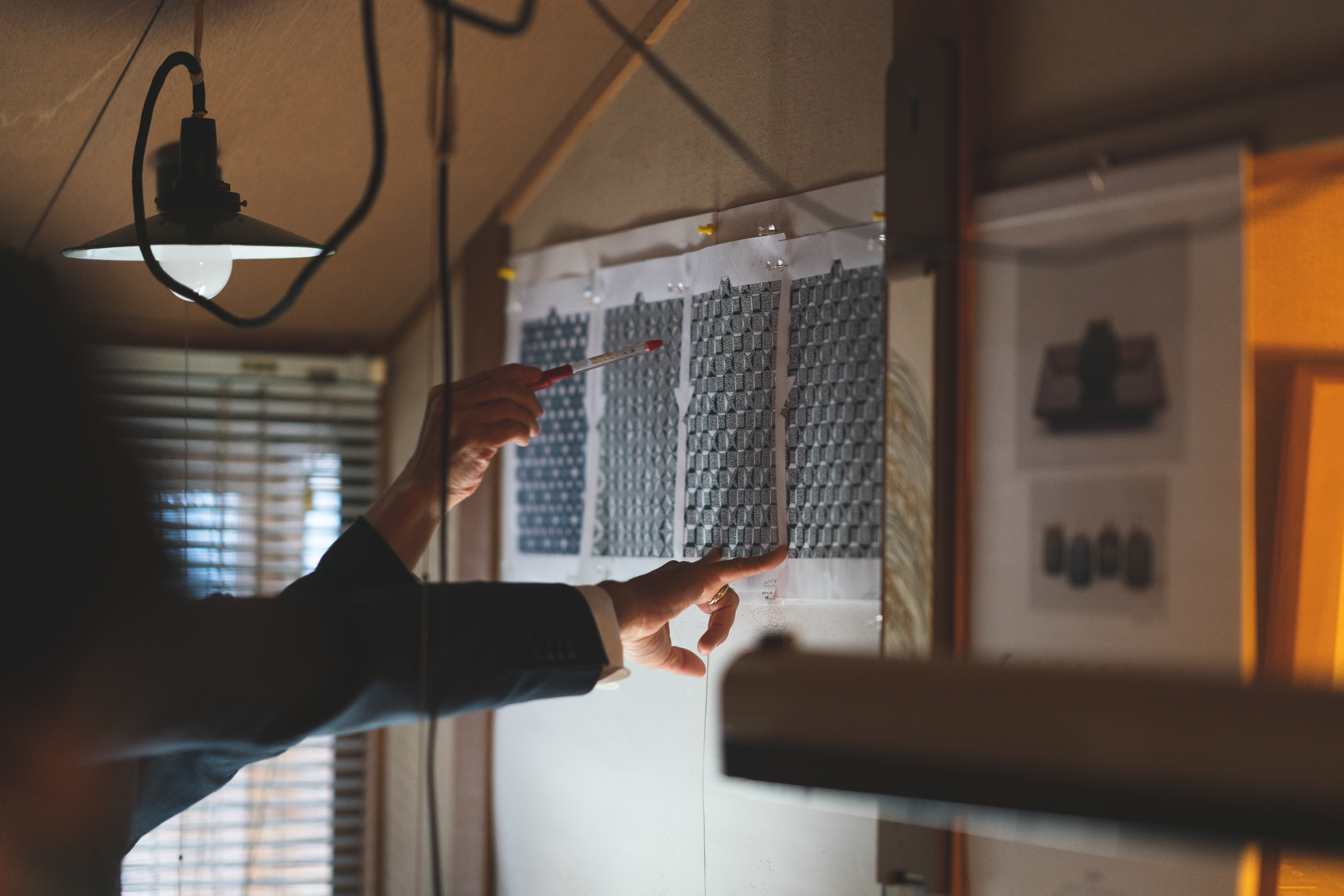 Dans son atelier, l’artiste japonais a présenté quelques-unes de ses œuvres au Président de la République, ainsi que les différentes étapes de leur conception.