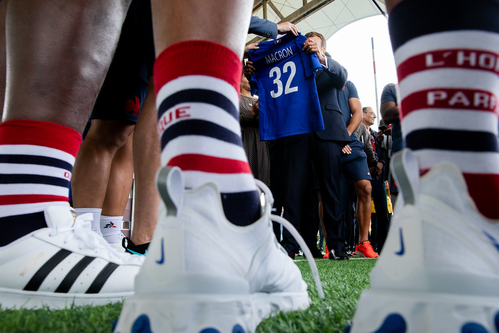 Le deuxième message que je voulais vous délivrer, c'est celui de l'exigence. C'est ce qui vous a fait. C'est qu'il y a dans ce sport. Exigence dont vous même et dans le collectif. Comme rien n’est écrit, tout dépend de vous. Vous vous êtes entraîné dur. Vous vous êtes préparé durant cet été. Et cette compétition sera dure. Et il n'y aura pas de phase d'attente. Vous le savez très bien comme moi. Dès le premier match, compte tenu de la poule que vous avez, on sera dans le dur et on saura si on y est ou pas. Et vous le serez. Et les valeurs qui font le rugby. Ce collectif, cette solidarité, cette humilité, cet engagement. C’est ce que vous devrez porter dès le début. Ce que j'attends de vous aussi c'est l'exigence individuelle et collective. Parce que n'oubliez jamais que vous portez beaucoup plus que votre simple maillot pendant cette compétition. Vous avez le maillot de la France. Et donc, de toute une nation qui vous regarde. Et puis, vous avez aussi et pensez-y à chaque fois, vos familles, vos bénévoles, vos clubs, vos camarades. C'est-à-dire, tous ceux qui sont engagés depuis le début de votre carrière qui continuent à s'engager partout en France pour que le rugby soit ce qu'il est. C'est ce que vous porterez aussi. C'est ce qui fait que je crois en vous. Parce que je sais la force que ça donne.