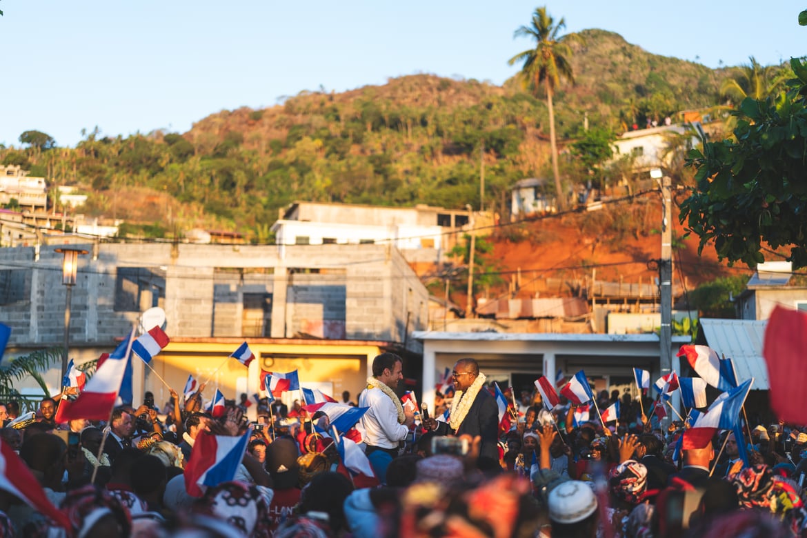 Je suis très heureux d’être parmi vous aujourd’hui à Mayotte et à Mamoudzou tout particulièrement. Tsi fourahi soifi leo. Je suis heureux de retrouver nos îles. On se souvenait avec quelques-uns du moment où j’étais passé quand j’étais alors candidat. Je disais c’est l’endroit de France où j’ai reçu le plus de baisers. Donc Mayotte, merci, Mayotte c’est vous, c’est cette géographie, cette culture, cette population et Mayotte c’est la France. Maore Faranza. Mayotte c’est la France parce que vous l’avez voulu, parce que les Mahorais l’ont voulu et les Mahorais les ont suivis.