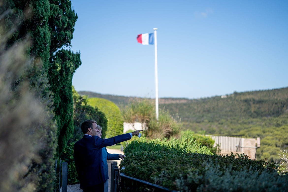 Déplacements au Liban, accueil d’Angela Merkel au Fort de Brégançon, cérémonie d'anniversaire de la libération de la ville de Bormes-les-Mimosa, Conseil des ministres, vie du Palais de l'Élysée....