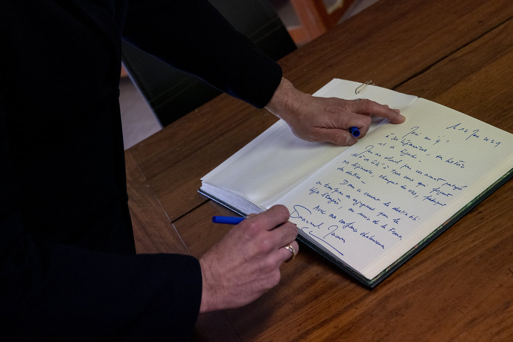 Après une visite des installations, le Président a échangé avec des légionnaires parvenus à différents stades de leur carrière. Il s'est vu présenter les principes et les méthodes qui permettent à la Légion étrangère, composée de ressortissants de 150 pays, de donner aux siens des valeurs communes fortes et d’atteindre un niveau d’excellence rare.