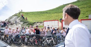 Le Président Emmanuel Macron s'est rendu jeudi sur la 6ème étape du Tour de France entre Tarbes et Cauterets-Cambasque.