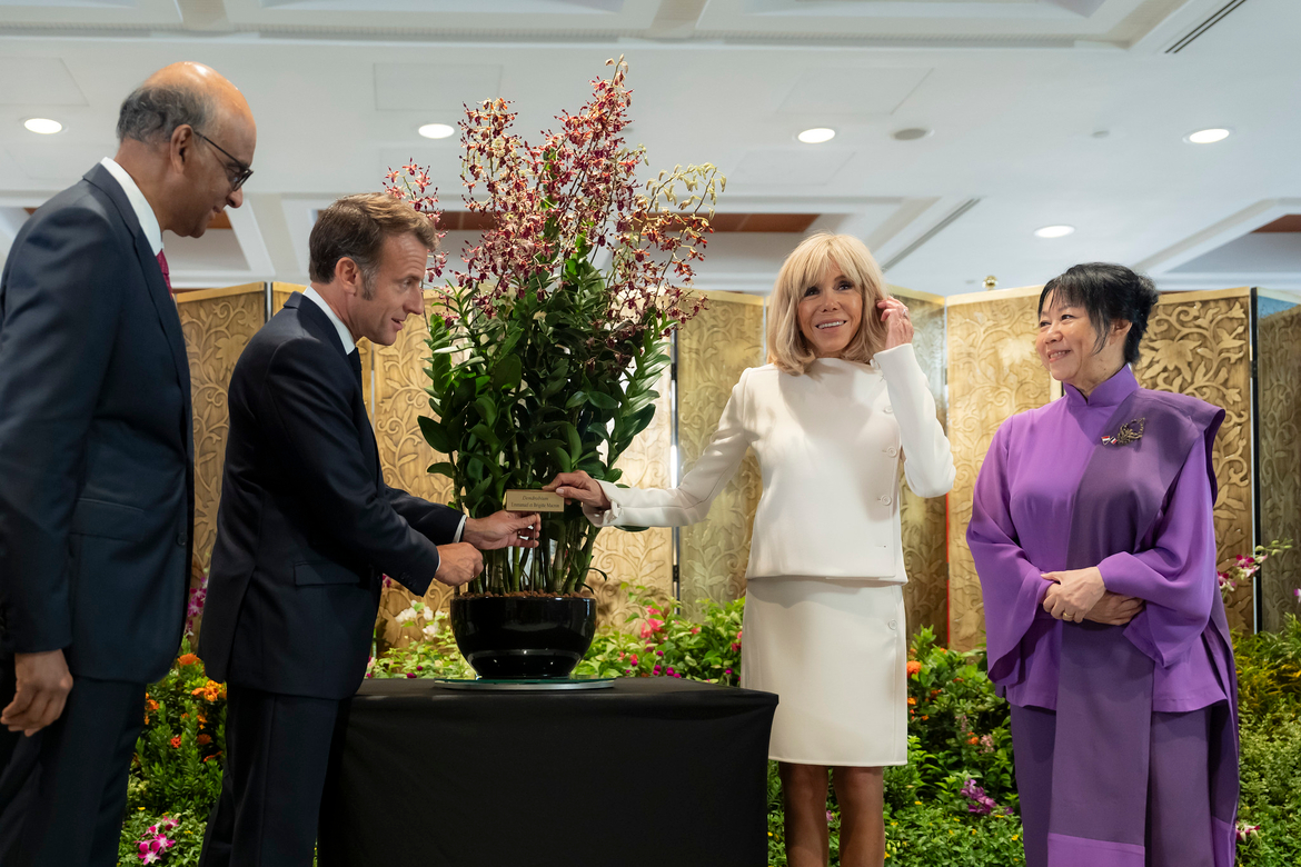 - Cérémonie d'accueil officiel au Parlement de Singapour, présentation de l’orchidée au nom de Emmanuel et Brigitte Macron