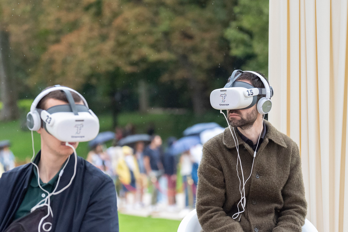 Après le succès des expériences immersives proposées les années précédentes, la Présidence de la République a proposé aux visiteurs de découvrir les évolutions des intérieurs du palais sur des casques et bornes de réalité virtuelle installées dans les jardins et la Cour d’Honneur.