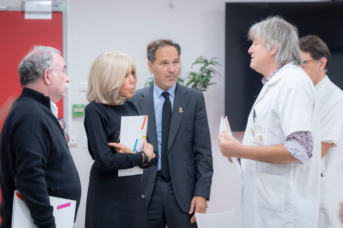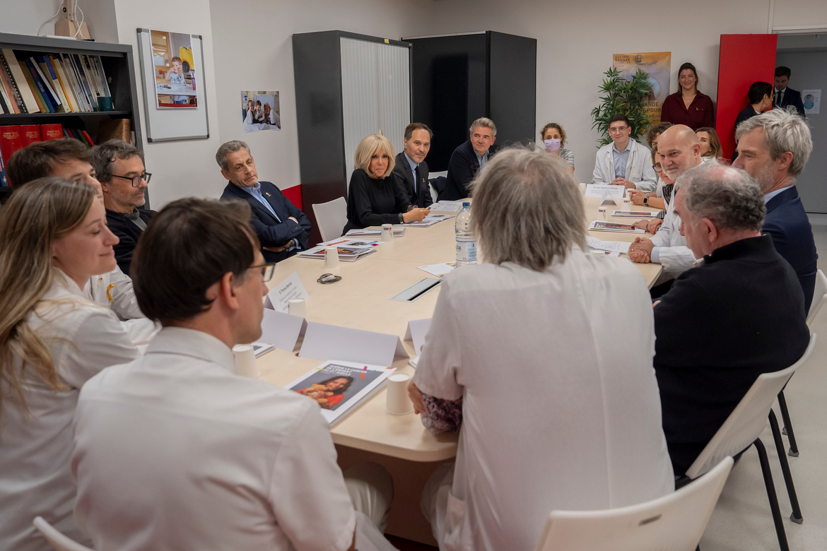Visite avec Nicolas Sarkozy, dans le cadre de « Septembre en Or », du département de Cancérologie de l’enfant et de l’adolescent, Gustave-Roussy, Villejuif (94)