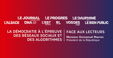 Dans le cadre de l’initiative lancée le 28 octobre dernier, et dans la continuité des échanges organisés à Toulouse et Arras avec les lecteurs de La Dépêche du Midi et La Voix du Nord, le chef de l’État poursuit le cycle de discussions consacré aux enjeux démocratiques à l’épreuve des réseaux sociaux et des algorithmes.