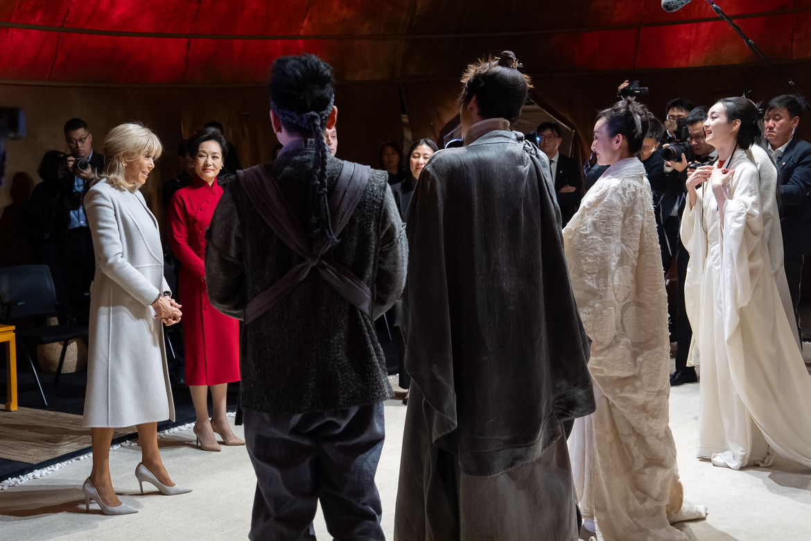 - Visite avec Peng Liyuan, épouse de Xi Jinping, Président de la République Populaire de Chine, du Théâtre d’Art populaire de Pékin, représentation d’un passage d’une pièce de Mo Yan, prix Nobel de littérature, rencontre et échanges avec des artistes, Pékin