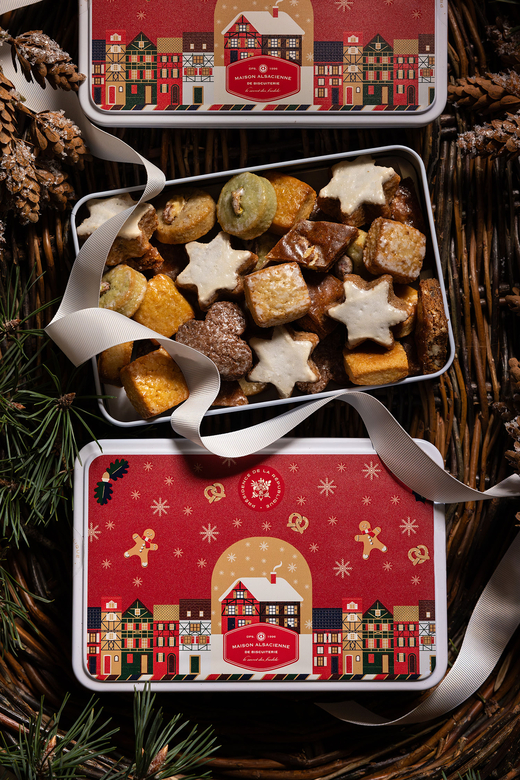- La Maison Alsacienne de Biscuiterie réunit, dans un coffret de Noël, un assortiment de Bredele moelleux, emblèmes de la tradition gourmande alsacienne.