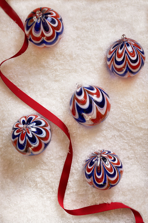 - La Verrerie de Kaysersberg édite une boule de Noël tricolore, en verre soufflé bouche et fait main, incarnation du raffinement artisanal.