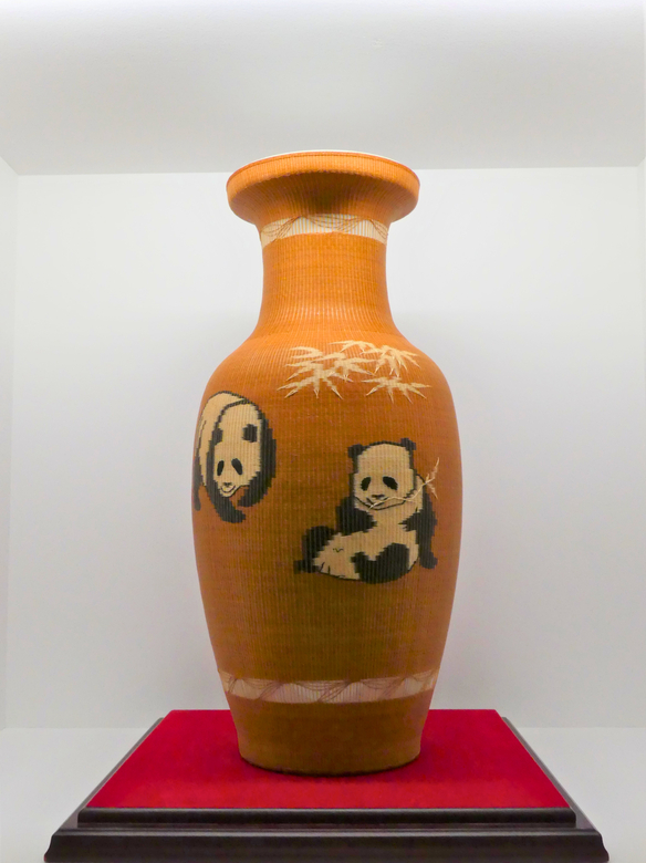 Orné d’un décor en bambou représentant deux pandas géants, ce vase symbolise l’amitié et la paix. La robe noire et blanche du panda, en harmonie avec les croyances culturelles chinoises, évoque le Yin et le Yang du Taiji.