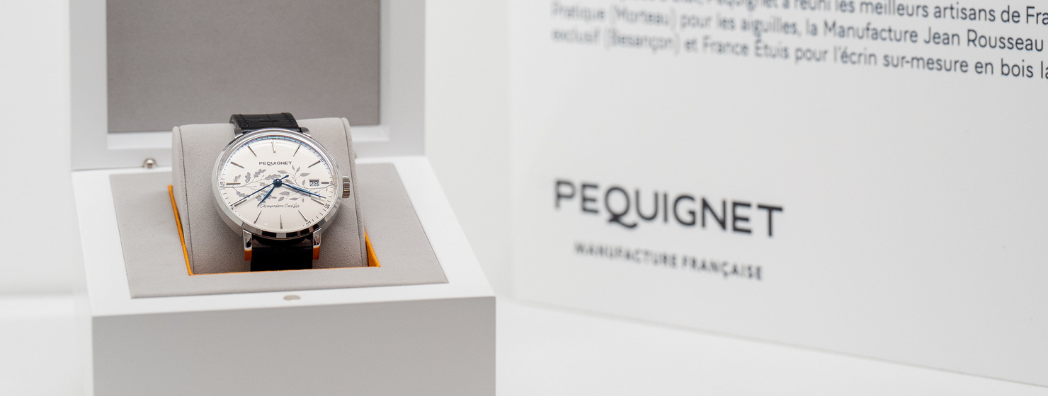 Fidèle à son ADN de manufacture de haute horlogerie française, Pequignet a doté ce modèle de son Calibre Initial. Créé en 2021, ce mouvement automatique dispose d’une réserve de marche de 65 heures. Grâce à un ancrage local, la totalité des composants est produite dans un rayon de 80 km autour de Morteau, 72% étant d’origine française. La montre bénéficie, en outre, de la prestigieuse certification Chronomètre de l’Observatoire de Besançon, le plus haut degré de précision horlogère au monde.